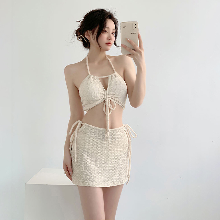 水着 ビキニ レディース セクシー 3点セット 女性用 大人 夏 セパレート 韓国風 きれいめ 海水浴 温泉 ビーチ 大人 おしゃれ スカート付き ホルターネック オトナ女子 バスト 盛れる エレガン