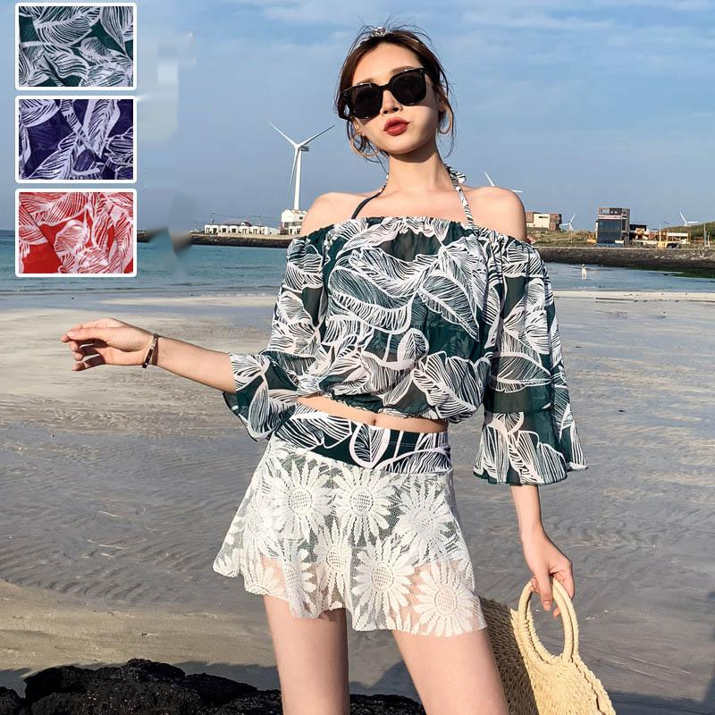 水着 ビキニ レディース セクシー 3点セット オトナ女子 バスト 盛れる 海水浴 温泉 女性用 大人 夏 セパレート スカート付き ホルターネック 韓国風 きれいめ ビーチ 大人 おしゃれ エレガン