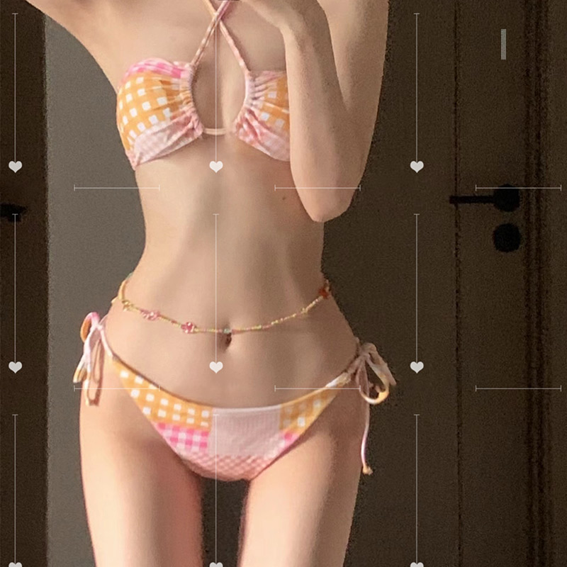 フリルビキニ トレンド セパレート ギンガムチェック ワンピース水着レディースファッション 水着