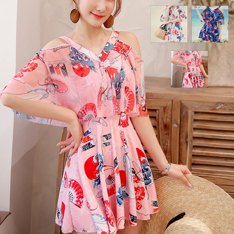 水着ワンピース みずぎ 人気 水着 韓国風 ミズギ 体型カバー レディース ビキニ 小胸 ワンピース 可愛い 日焼け防止 タンキニ 大人 フレアスカート パッド付き ママ