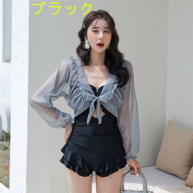 レディース 水着 ビキニ レディースカバーアップ体型カバー グレー ブラック セクシーチュニック総うレース ワンピースキャミソールかわいい
