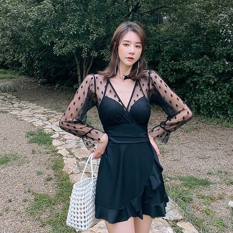水着 体系カバー水着 ワンピース フリル 谷間魅せ 盛れる かわいい 大人可愛い きれいめ セクシー sexy シンプル カジュアル ナチュラル ゴージャス 華やか 大人 大人っぽい おしゃれ お洒落