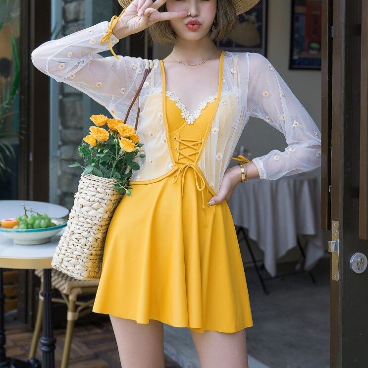 水着 ビキニ スイムウェア ワンピース水着 セクシービキニ 体系カバー水着 羽織り ワンピース 体系カバー 二の腕カバー リボン レースアップ ハイウエスト 透け感 シャーリング 胸元 谷間 谷間魅せ