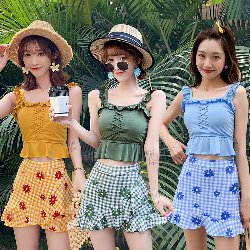 水着 ビキニ 3点セット スカート 体型カバー セット パッド入り ワイヤーなし 可愛い 温泉 海水浴 ビーチウエア かわいい セクシー セパレート レディース