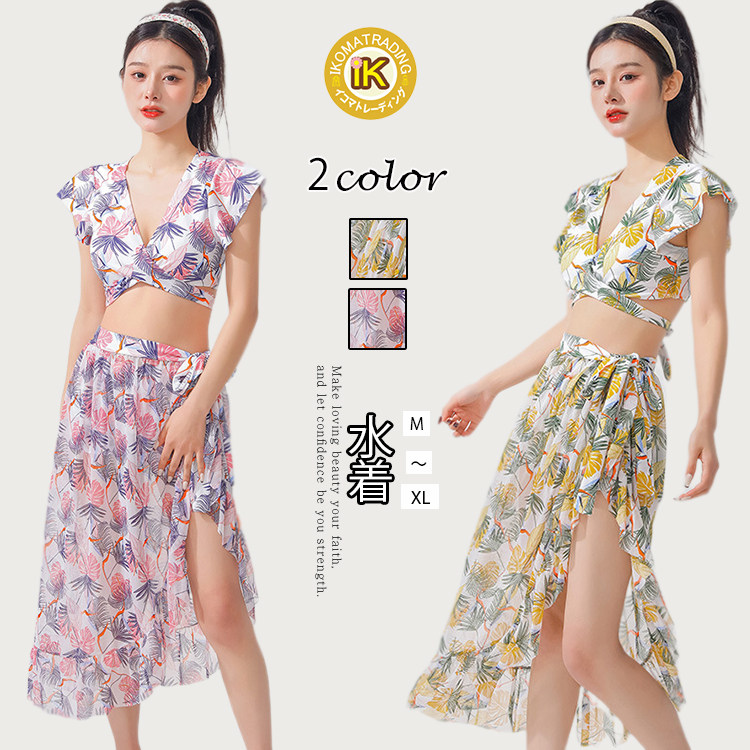 水着 スイムウェア 3点セット アロハ 女性 大人 お洒落 スカート ショーツ リゾート 海レディースファッション 水着