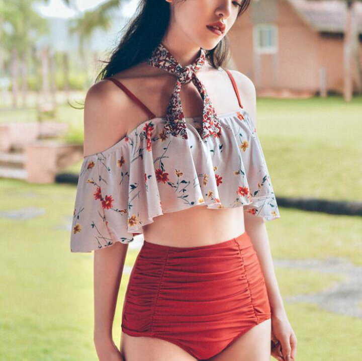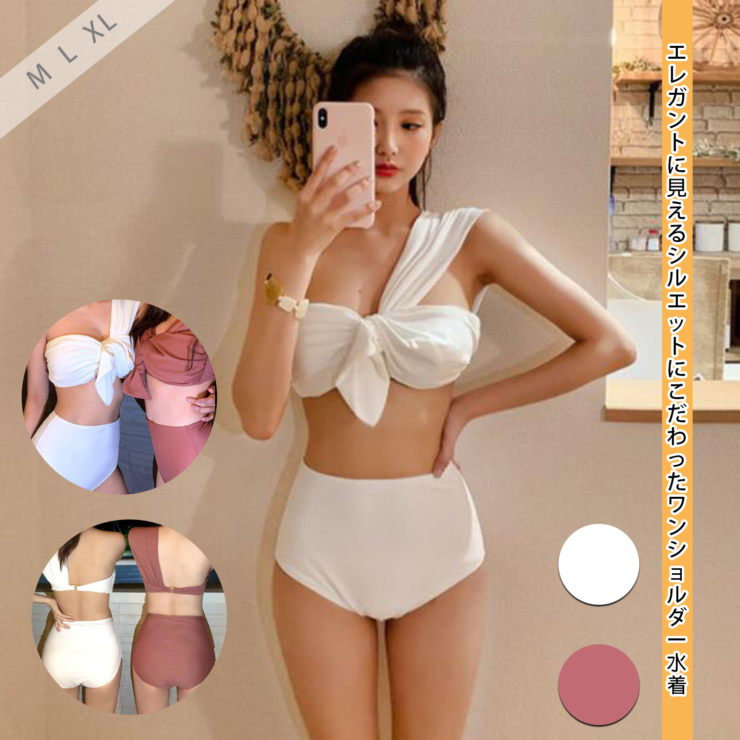 ビキニ 水着 レディース セパレート ワンショルダー ノン ワイヤー ハイウエスト 体型カバーレディースファッション 水着
