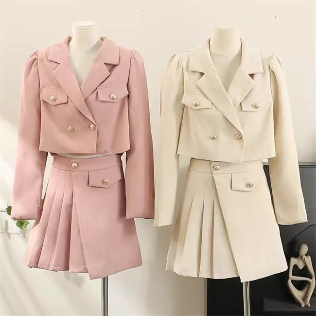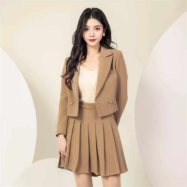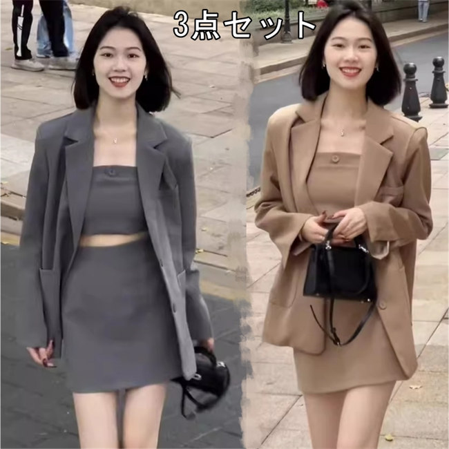 ブラウン ブラック グレースーツ セット レディース韓国ファッション無地セットアップ上下セットジャケット+スカート+チューブトップ3点セット スーツ 上着ジャケット 2 3 4