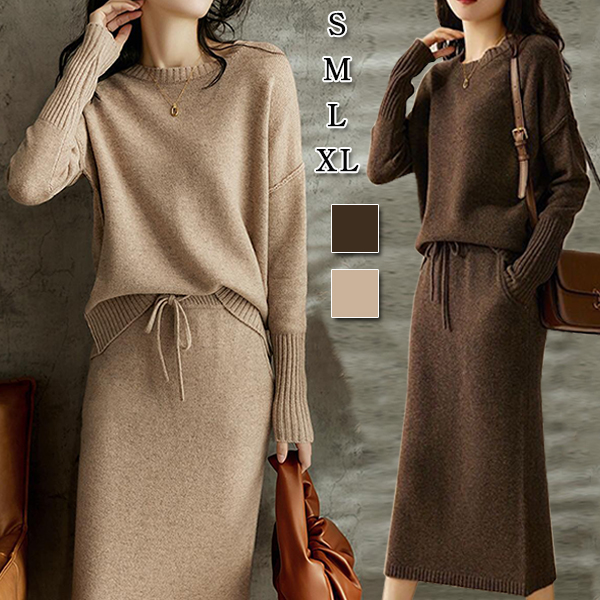 レディース ニットワンピース 秋冬セーター 2点セット 通勤服 OL 2colors セットアップレディースファッション スーツ セットアップ スカートスーツ