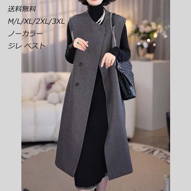 レディース ベスト ジレ ミドル丈 体型カバー アウター 大きいサイズ 重ね着 上着 ミモレ丈ベスト ノースリーブ 前開き ショート ベスト ジレ コート ミドル丈 ジレ ベスト