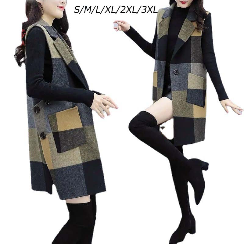 レディース ベスト ジレ 体型カバー アウター チェック柄のテーラードロングジレ ミモレ丈ベスト ノースリーブ 前開き ロングベスト ジレ コート ロングジレ ロングベスト