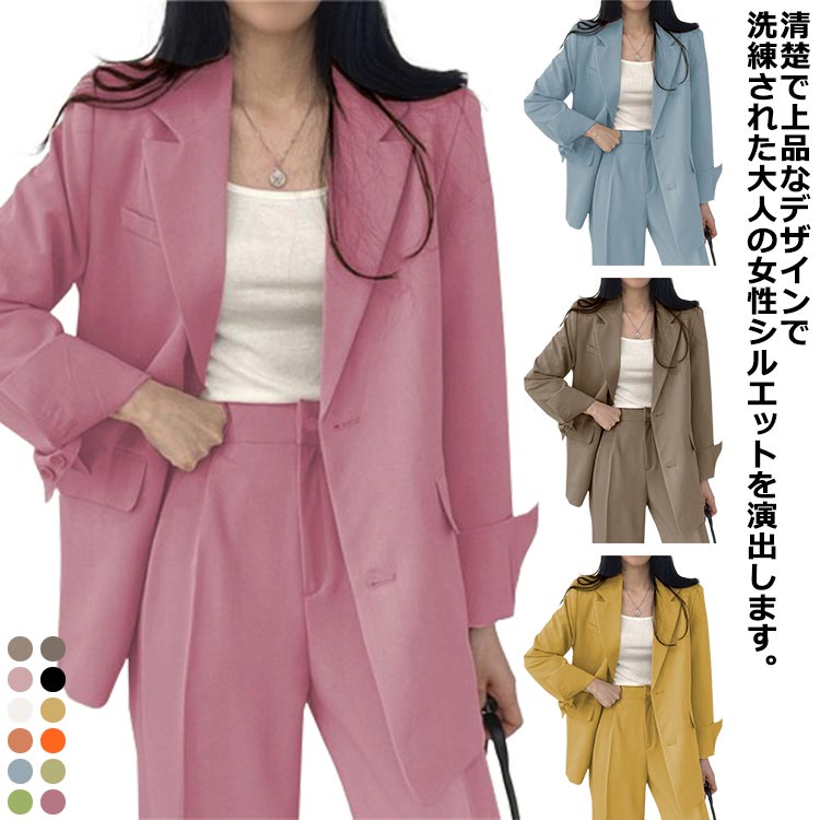 2点セット パンツ 大きいサイズ ジャケット フォーマルスーツ 無地 スーツ かっこいい シンプル 上下セット レディース ビジネス おしゃれ 通勤 入園式 セットアップ オフィス カジュアル フォー