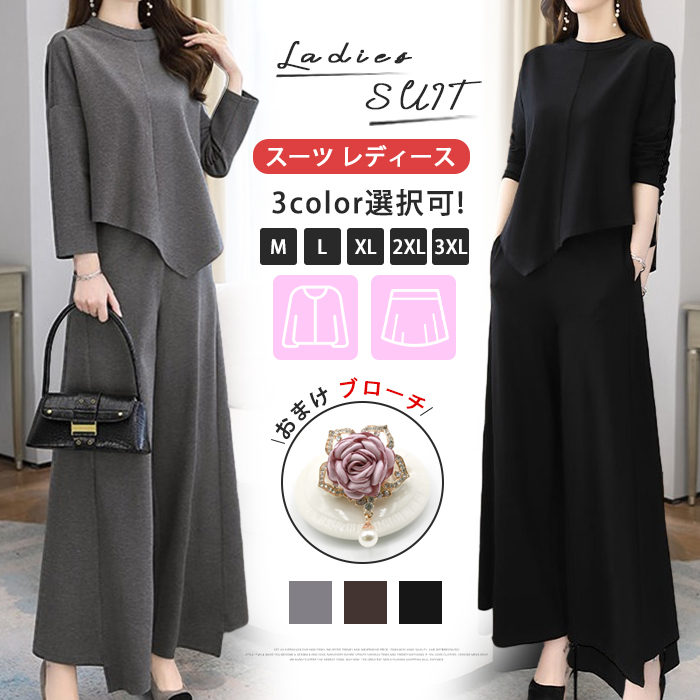 セットアップ レディース 春 秋 冬 パンツスーツ ワイドパンツ パンツドレス 2点セット 入学式 スーツ ママ コーデ パンツスーツ ビジネス オフィス 入学式 卒業式 入園式 卒園式
