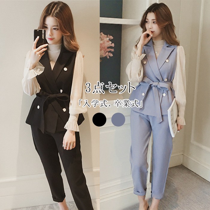 スーツ レディース 入学式 卒業式 セットアップ 3点セット テーパードパンツ フォーマル 母 30 40 50代 セレモニースーツ フォーマルスーツ