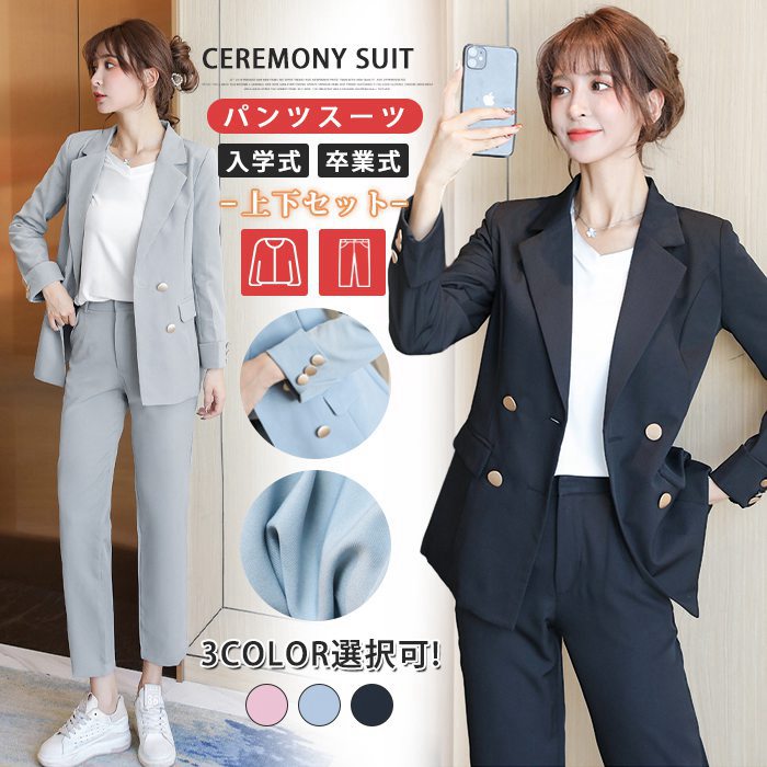 上下セット ママスーツ パンツスーツ スーツ レディース 母親 卒業式 OL 通勤 服 母 セレモニー フォーマル