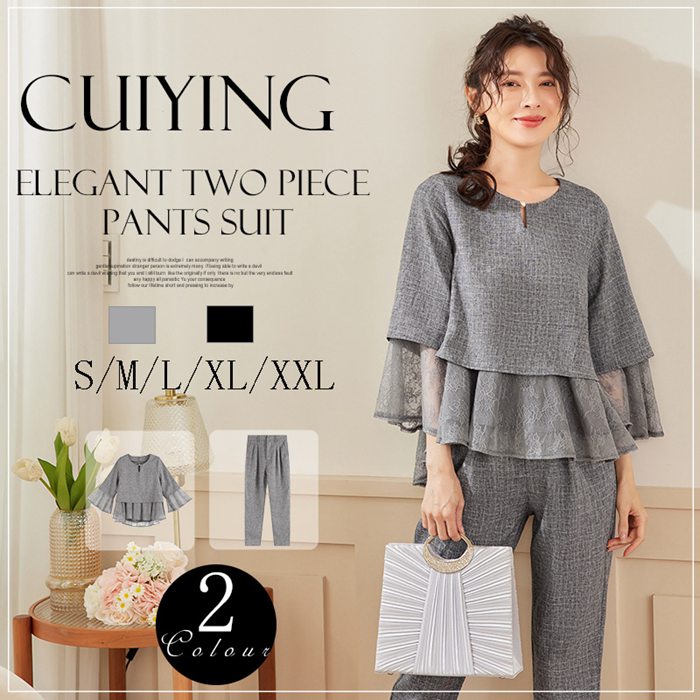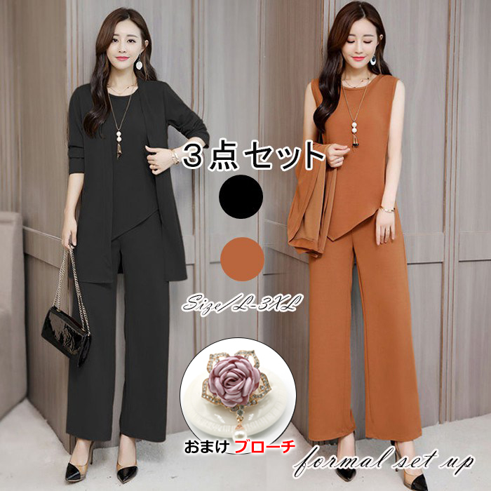 パンツドレス セットアップ ママスーツ 母 ママ 結婚式 パーティードレス トップスワイドパンツ 大きいサイズ レディース フォーマル