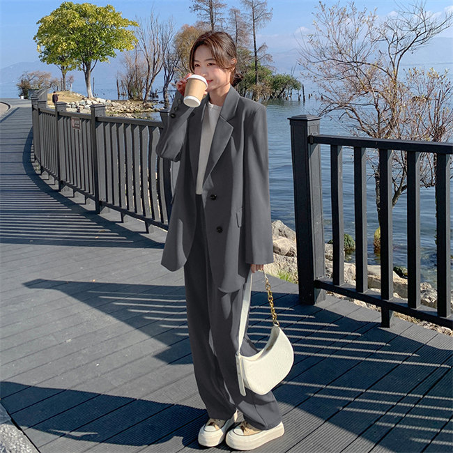 グレーパンツスーツ 2点セット ビジネススーツ スーツセットアップ レディース ゆったり オフィス 通勤 フォーマル カジュアル お洒落 同窓会 入学式 卒業式 春 夏 秋ジャケット+ズボン2点セット