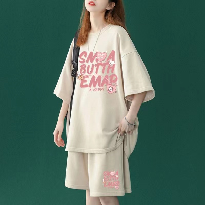 Tシャツ+ショートパンツ 夏 レディース 半袖 薄手 ゆったり スポーツウェア 上下セット 2点セット トップス 英文字 可愛 ホワイト レッド グリーン パープル ブラック M L XL 2XL S