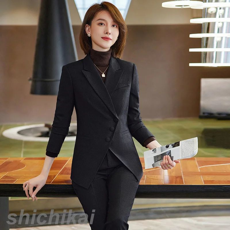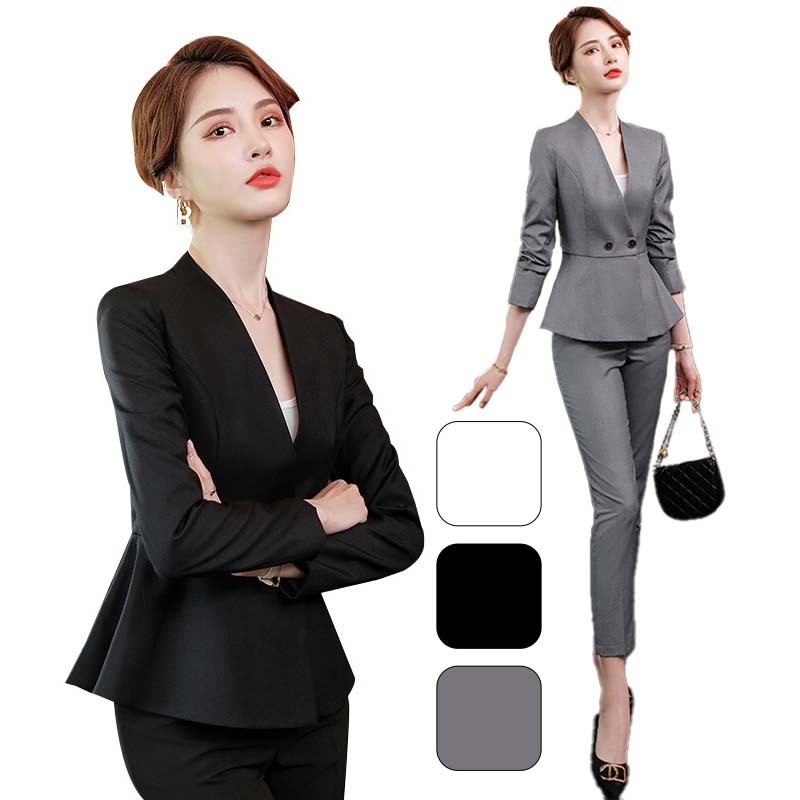 スーツジャケット 長ズボン パンツスーツ 通勤 ビジネス オフィス 20代 30代 40代 大きいサイズ ゆったり 2 3 ブラック グレー 2色選べる フォーマルウェ