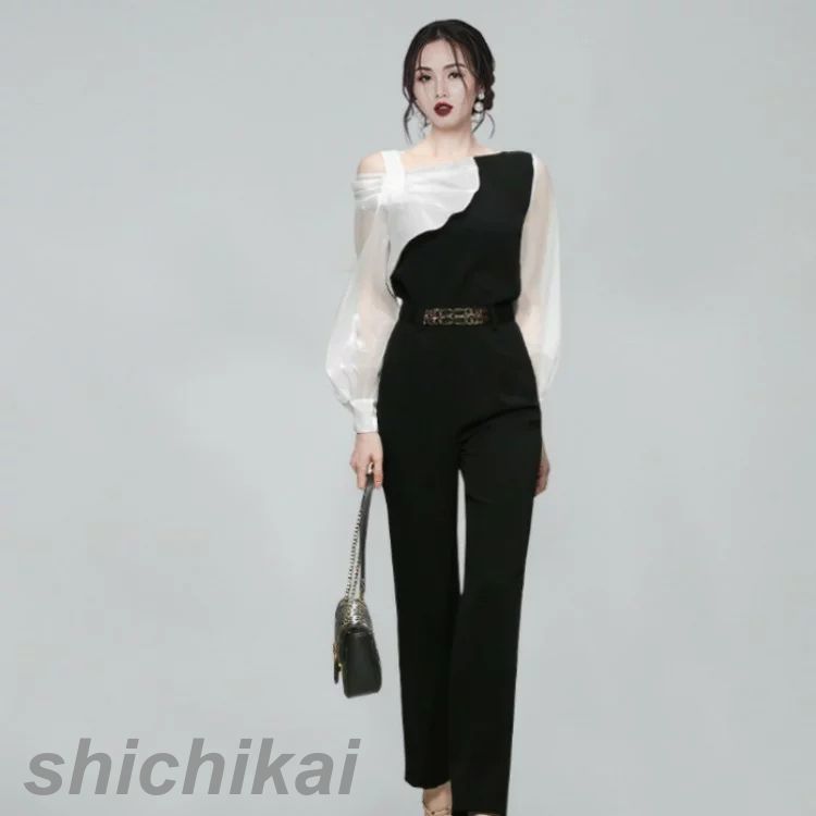 セットアップパンツ オフィスカジュアル トップスとストレートパンレディースファッション スーツ セットアップ パンツスーツ