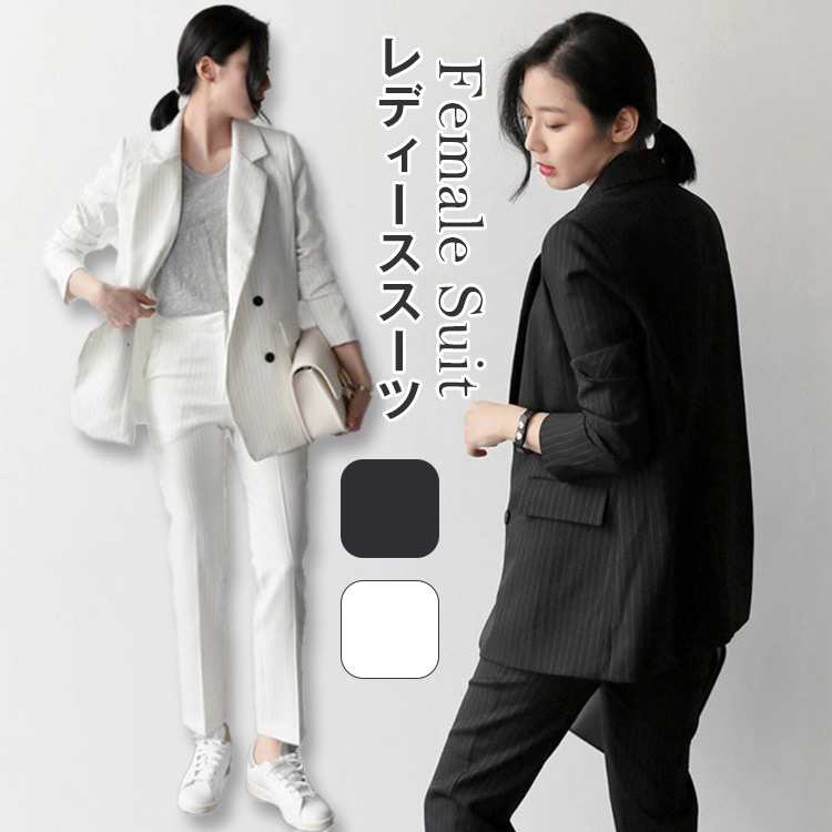スーツセット セットアップ スーツ レディース 上下セット スーツジャケット ロング丈パンツ パンツスーツ 長ズボン 長袖ジャケット 無地 ゆったり 大きいサイズ 黒 白 ブラック