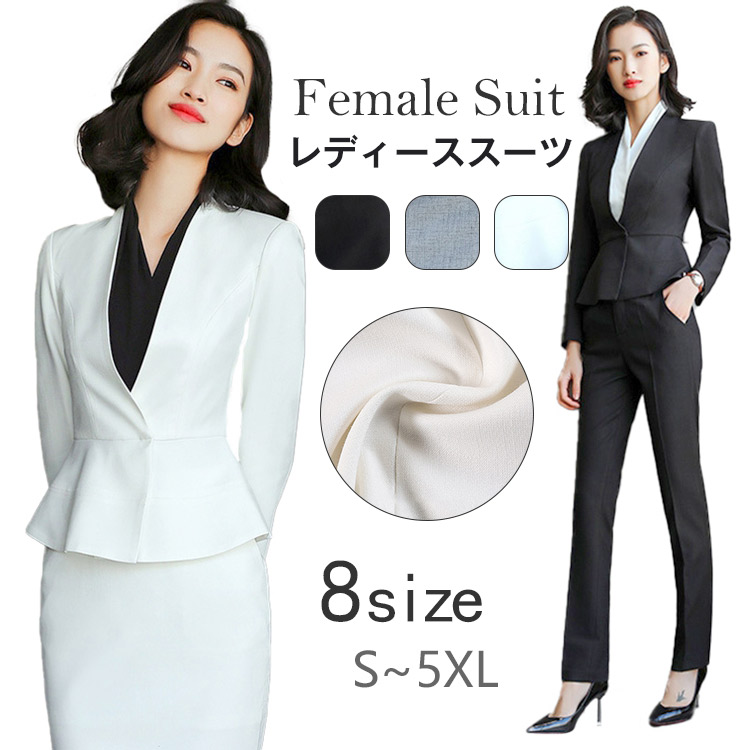スーツジャケット 長ズボン パンツスーツ 通勤 ビジネス オフィス 20代 30代 40代 大きいサイズ ゆったり XS S M L XL 2XL 3XL ブラック グレー 2色選べる フォーマルウェ