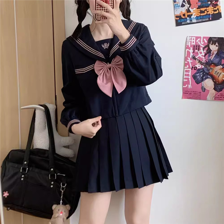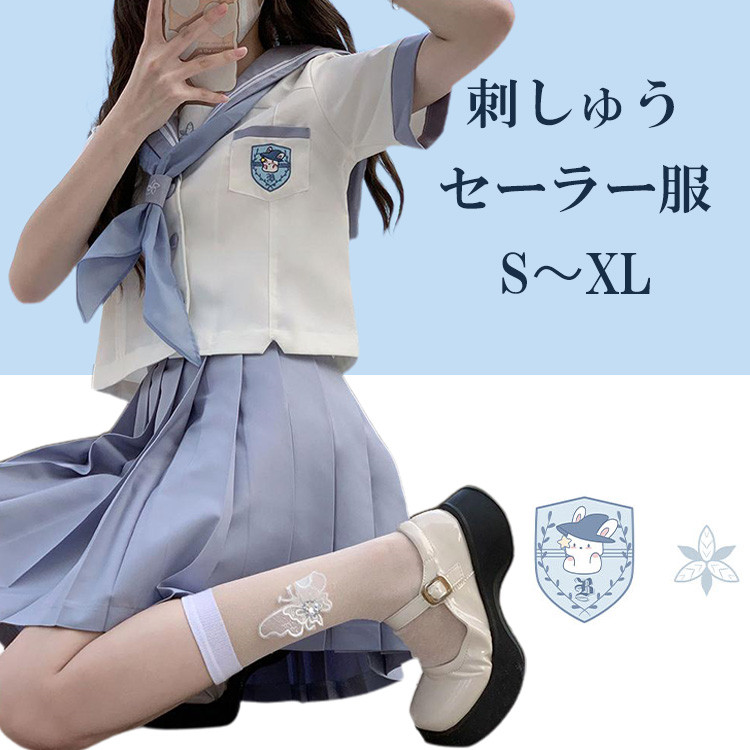 セーラー服女子高生スクール制服学生清純コスプレ 衣装上下セット 上衣 スカート春夏秋短袖長袖ハイソックス付属