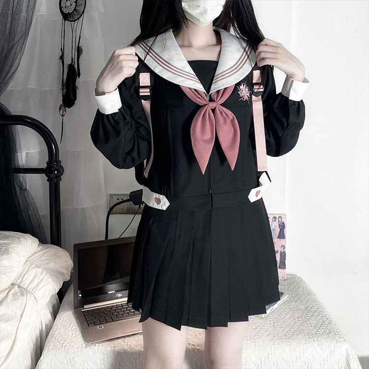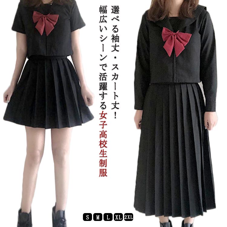 トップス 制服コスプレ 長袖 セーラー服 レディース コスプレ学生服 上下セット リボン スカート コスプレ 衣装 半袖 ギフト 女子校生 黒 JK制服 JK 可愛い 靴下付きセット コスプレ高校生
