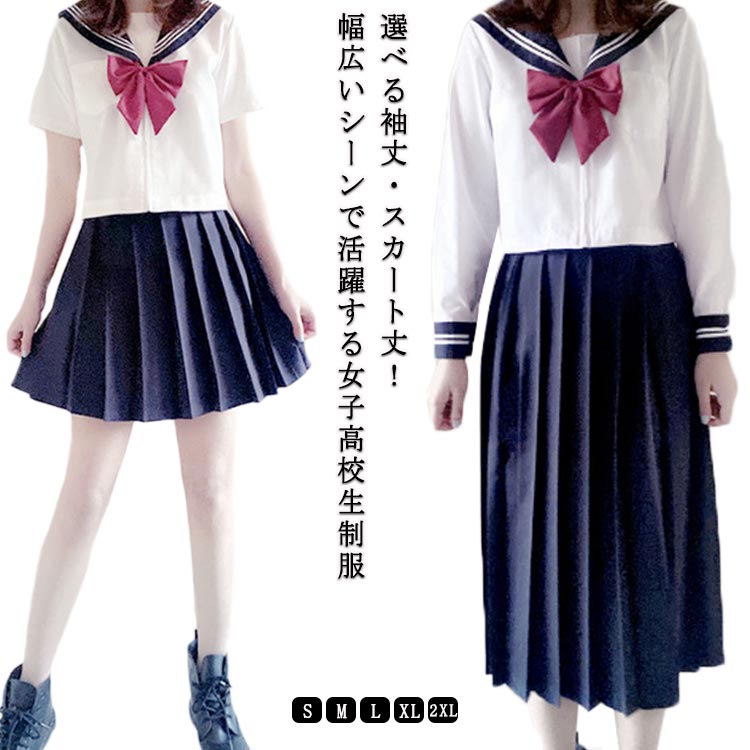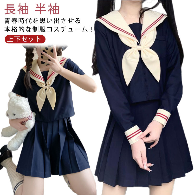 セーラー服 セーラー 長袖 半袖 制服 女子高生 上下セット セットアップ 衣装 仮装 コスチューム コスプレ衣装 大人用 3点セット ロングスカート ショートスカート 可愛い セクシー ハロウィン