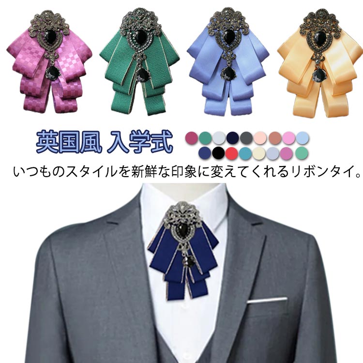 華やかなビジュー付きリボンタイ 男女兼用 ブローチ 蝶結び 普段使い 結婚式 パーティー 発表会 入学式 演奏会 蝶ネクタイ