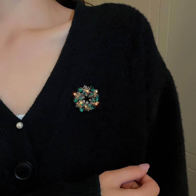 ブローチ 花輪緑グリーン おしゃれ きらきら アクセサリー お呼ばれレディースファッション 学生服 ネクタイ リボン