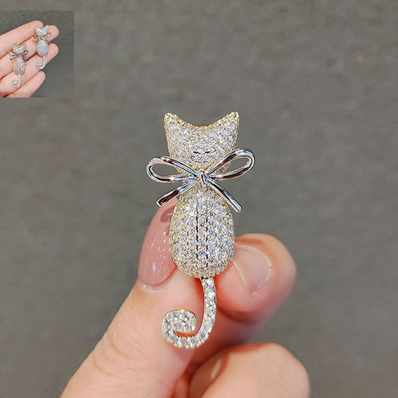 ブローチ ねこ 猫 ラインストーン おしゃれ きらきら アクセサリー お呼ばれレディースファッション 学生服 ネクタイ リボン
