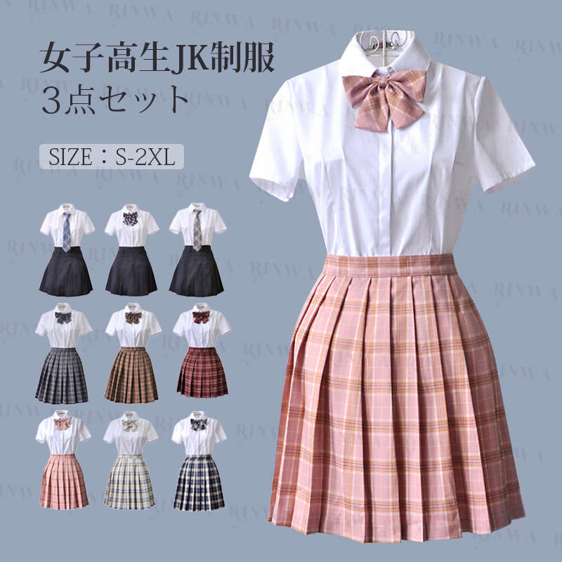 学生制服 セットアップ スカート シャツ 蝶結び付き チェック柄 プリーツスカート レディース 高校生