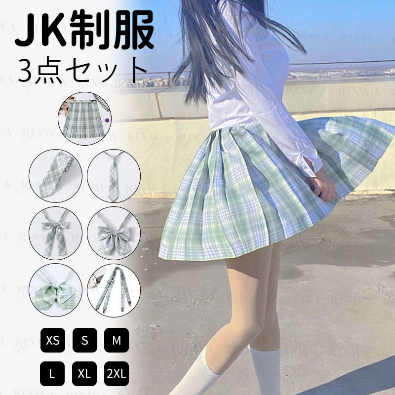 制服 学生制服スカート スラックス メンズ 3点セット チェック柄 プリーツスカート スクール 制服 蝶結び ネクタイ付き 女子高生スカート レディース 高校生 お受験 ペア制服
