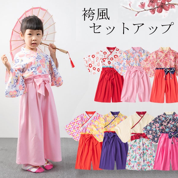 袴風 女の子 セットアップ キッズ 袴 2点セット 上下セット 小学生 子供服 和服キッズ ベビー マタニティ キッズファッション 和服 着物セット