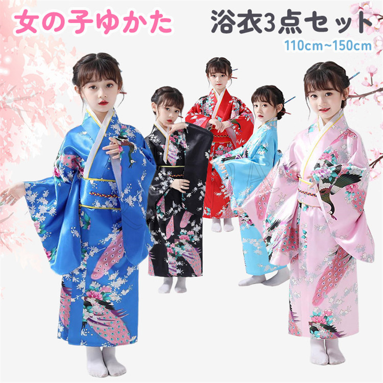 子供 キッズ 女の子 浴衣 花柄 ワンピース ガールズ 祭り 花火大会 七五三 お正月 和服 衣装 着物 小学生 子供服 和服 衣装 着物 可愛い おしゃれ ゆったり 結婚式 誕生日 記念日 ひな祭り