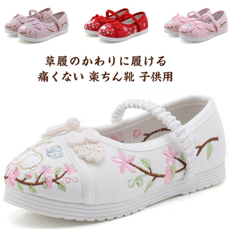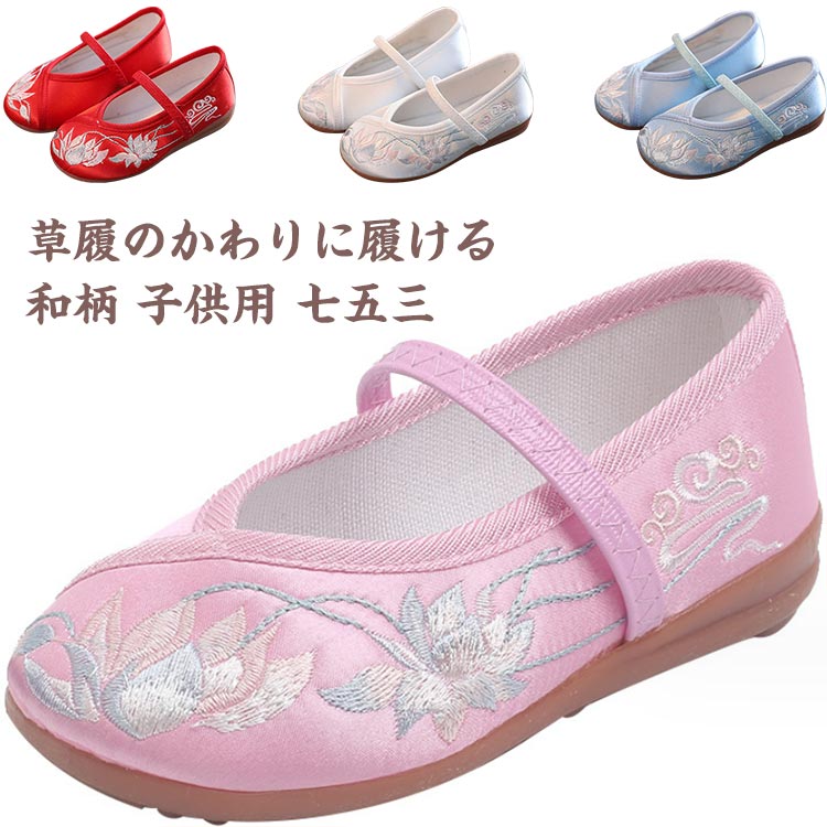 和柄 子供用 歩きやすい 七五三 楽ちん靴 和装 女の子 草履のかわりに履ける 刺繍 ぺたんこキッズ ベビー マタニティ キッズファッション 和服 履物