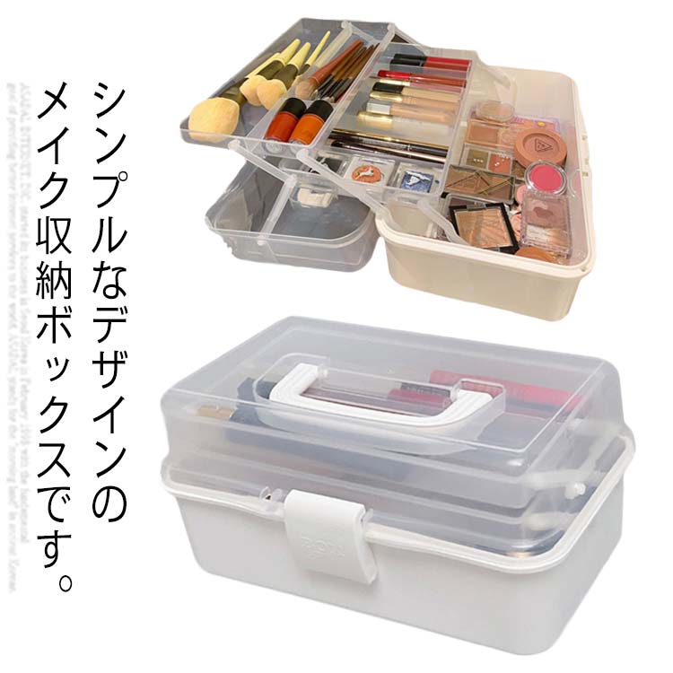 メイクボックス コスメ収納 大容量 持ち運び 半透明 多機能 おしゃれ メイク収納 化粧品収納ボックス シンプル 防塵 ケース トレー 蓋付き 3段式 化粧品入れ 小物入れ
