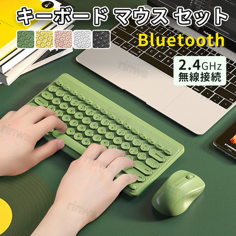 ワイヤレス キーボード マウス セット 鮮やかなカラー おしゃれ 可愛い 英字配列 英字キーボード Bluetooth 無線 ミニ 薄型