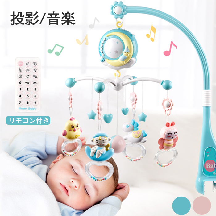 多機能のベビベッドおもちゃ 音楽 投影 ナイトライト 童謡 子守唄 リモコン付おもちゃ ベビー向けおもちゃ ベッドメリー モビール