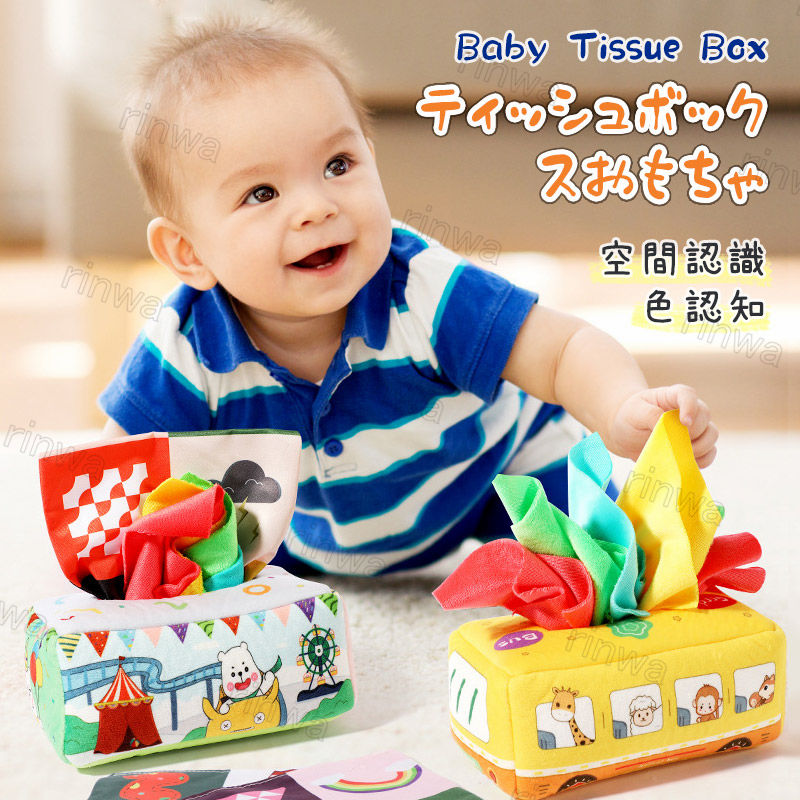 布のおもちゃ 赤ちゃんのティッシュボックスに沿って引っ張る 感覚組織ボックスおもちゃ 感覚玩具 幼児 新生児のためのカラフルな柔らかいスカーフ 握るトレーニング 脳の発達 タオルバス引き出し付き ベビ