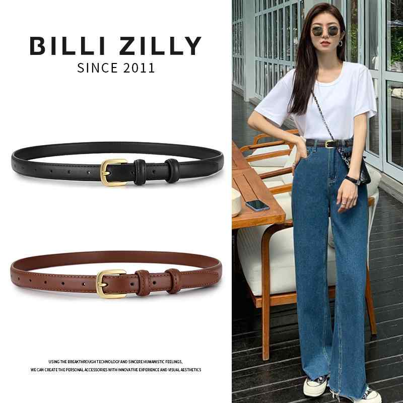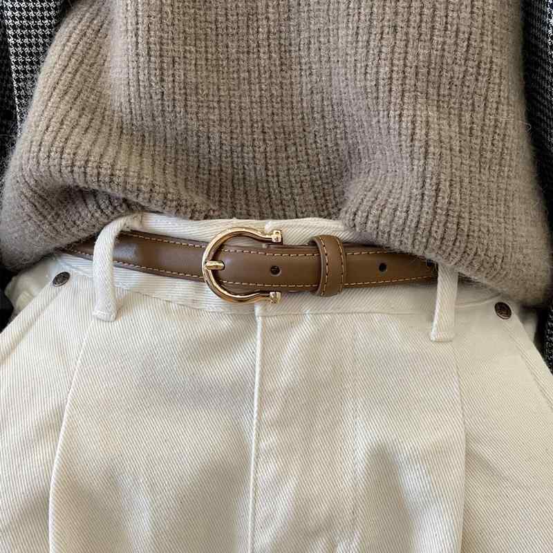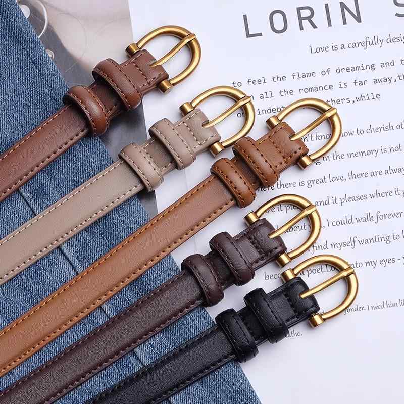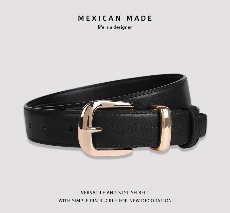 レディース 本革 牛革 レザー ゴールドバックル 細幅 スリム 薄型 シンプル カジュアル きれいめ 多用途 ジーンズ 大人女子