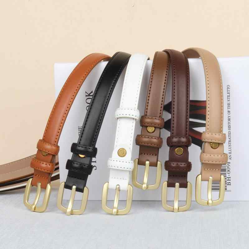 レディース 牛革 本革 レザー 細幅 スリム ゴールドバックル ブラック ブラウン ホワイト ベージュ 女性用 ソフト シンプル
