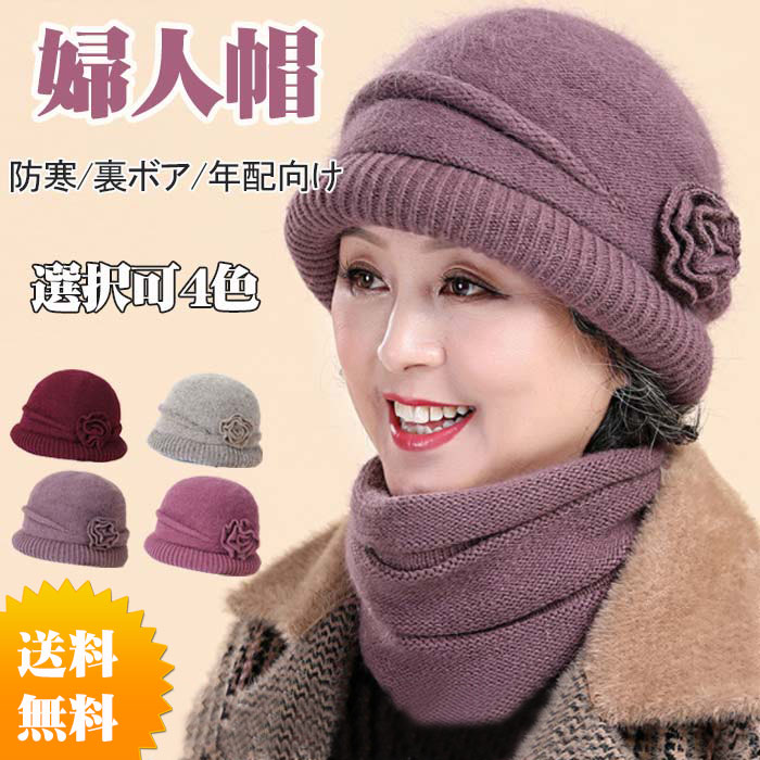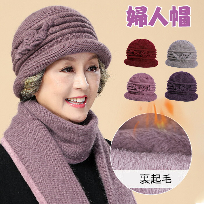かわいらしいお花付 婦人帽 レディース 暖かい 秋冬 エレガント 防寒 ニットハット 折りたたみバッグ 小物 ブランド雑貨 帽子 レディース帽子 ニット帽