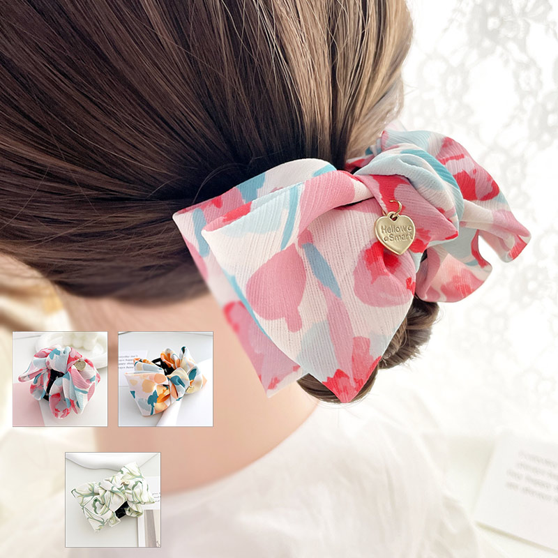 シュシュ リボンシュシュ ヘアゴム ヘアアクセサリー 髪ゴム チューリップ柄 シフォン レディースジュエリー アクセサリー レディースジュエリー アクセサリー ヘアアクセサリー シュシュ