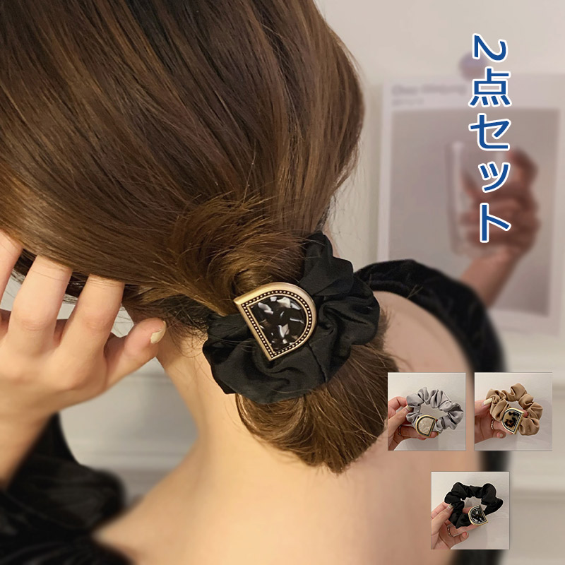レトロ 2点セット べっ甲風 スクエア 四角 ヘアゴム レディース 女性用 シンプル シュシュ しゅしゅ