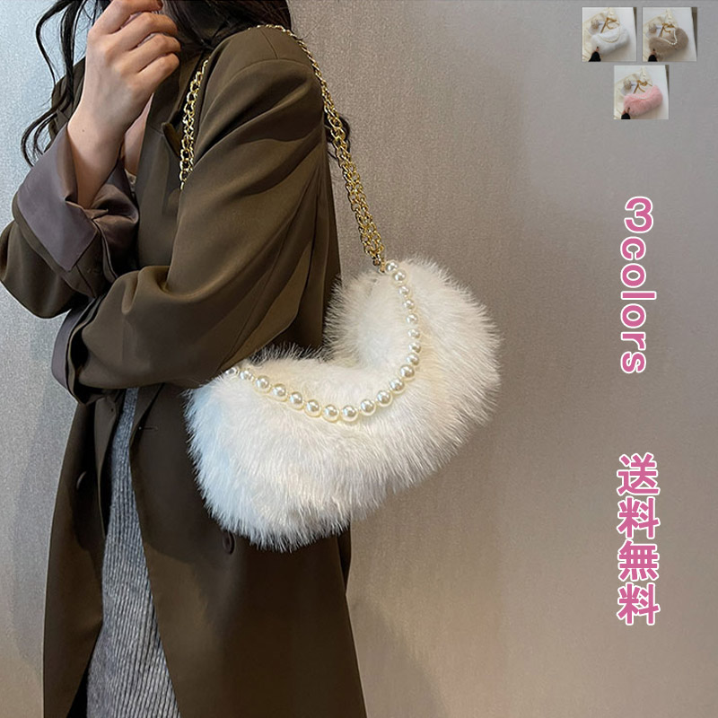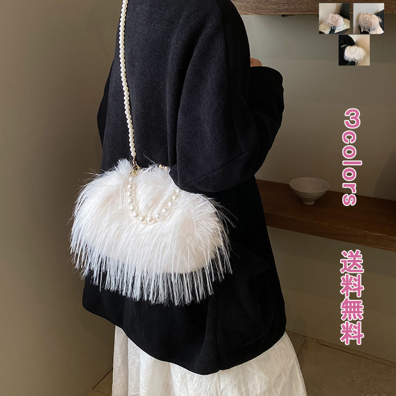 ファーバッグ ショルダーバッグ ショルダー バッグ レディース パール ふわふわ もこもこ ラムファー風 ショルダーバッグ クラッチバッグ ハンドバッグ エコファー フェイクファー ファーバッグ コン