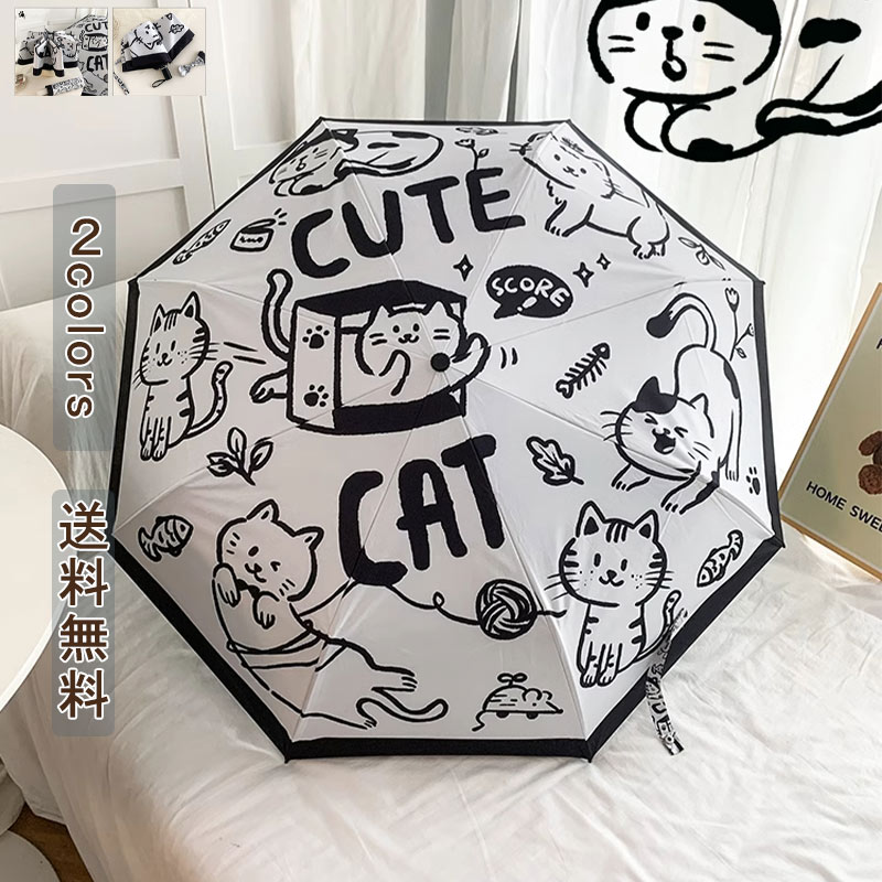 折りたたみ傘 8本骨 傘 レディース傘 かさ 雨傘 日傘 晴雨兼用 完全遮光 遮熱 UVカット 日焼け防止 自動 手動 超撥水 携帯便利 コンパクト レディース 小型 おしゃれ 手描き 猫 かわいい