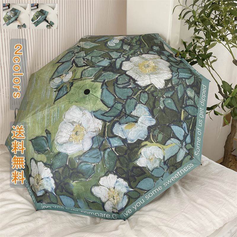 折りたたみ傘 8本骨 傘 レディース傘 かさ 雨傘 日傘 晴雨兼用 完全遮光 遮熱 UVカット 日焼け防止 自動 手動 超撥水 携帯便利 コンパクト レディース 小型 おしゃれ 油絵 レトロ かわいい