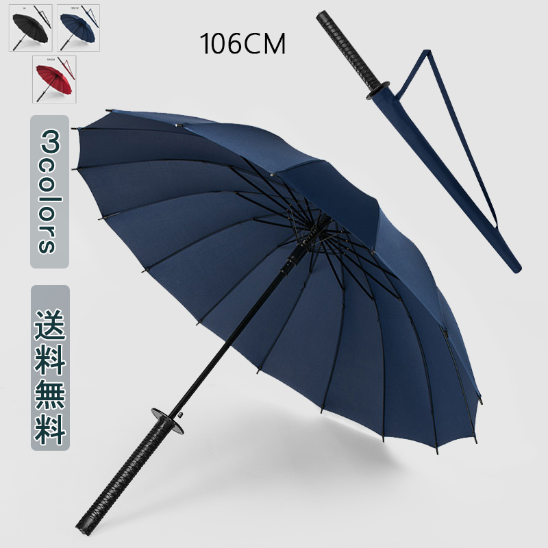 長傘 16本骨 傘 かさ 雨傘 晴雨兼用 おしゃれ 和風 無地 シンプル 耐風 丈夫 頑丈 ジャンプ ギフト プレゼント 安い デザイン かっこいい コスチューム用小物 道具 コスプレ サムライ 武士