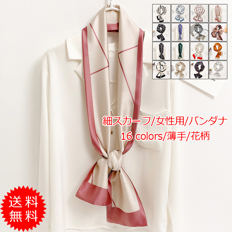 スカーフ レディース ネックスカーフ 細 スカーフ 薄手 花柄 シンプル バンダナ 巻き方 アウトドア ビジネス 軽量 アクセサリー 春夏秋